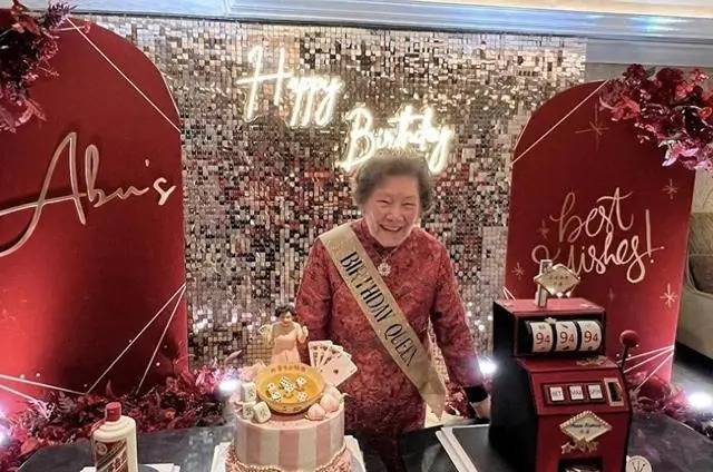 照片里,96岁的外婆穿着玫红色衣服,外搭灰色马甲,一头黑发烫着卷,脖子上戴着金链子,精神矍铄,笑靥如花。