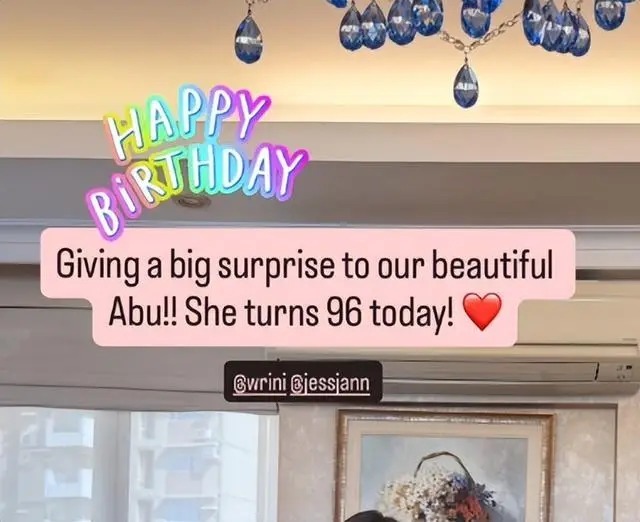 1月6日,汪诗诗在社交媒体上晒出一组家庭聚会的照片,配文“给了一个巨大的惊喜给我们美丽的外婆(Abu),她已经96岁了”。